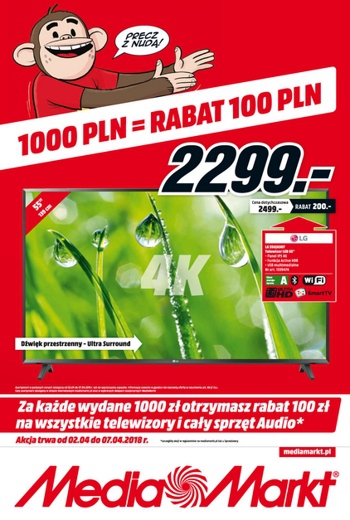 {loadposition linkMediaMarkt} Nowa gazetka promocyjna Media Markt - "Też masz czasem 18 lat?". Polecane promocje z gazetki Media Markt: Telewizor 4K Ultra HD 55" SONY KD-55XD8005 - 4999 zł. Telewizor LED 32" SKYMASTER 32SH1000-TNT + telewizja TNTV - 749…