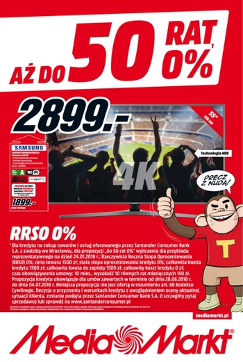 {loadposition linkMediaMarkt} 'Aż do 50 rat 0%' - nowa gazetka promocyjna Media Markt. Polecane promocje z gazetki Media Markt: Telewizor 4K Ultra HD 55 cali SAMSUNG UE55MU6442U - 2899 zł. Telewizor LED 32 cale SKYMASTER 32SH2500 - 599 zł.…