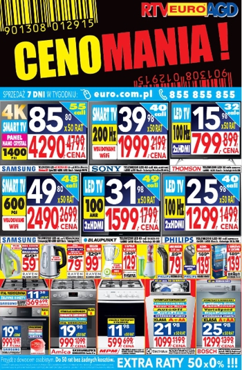 Nowa gazetka promocyjna RTV EURO AGD - "Cenomania!". Polecane promocje z gazetki RTV EURO AGD: Telewizor LED 40" Sony KDL-40W705C - 1999 zł. Kuchnia gazowa MPM MPM-51-KGF-17 - 599 zł. Zmywarka do zabudowy Electrolux ESL4500LO - 1099 zł.…