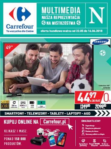 {loadposition linkCarrefour} 'Multimedia - nasza reprezentacja na mistrzostwa' - nowa gazetka promocyjna sieci sklepów Carrefour. Polecane promocje z gazetki Carrefour: Telewizor LED 49 cali Samsung UE49M5002 - 1349 zł. Telewizor LED 19 cali Manta 19LHN58C + telefon Manta 1711…
