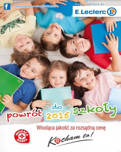 {loadposition linkEleclerc} Nowa gazetka promocyjna sieci handlowej E.Leclerc - "Powrót do szkoły 2015". Polecane promocje z gazetki E.Leclerc: Farby plakatowe 6x20 ml - 3,49 zł. Modelina fluorescencyjna 10 sztuk - 4,99 zł. Temperówka z pojemnikiem - 0,99 zł. …