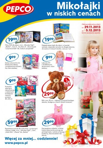 {loadposition linkPepco} Nowa gazetka promocyjna Pepco - "Magiczne Święta w niskich cenach". Polecane promocje z gazetki Pepco: Bawełniana koszulka dziewczęca Hello Kitty - 14,99 zł. Top damski - 14,99 zł. Portfel męski ze skóry naturalnej - 24,99 zł. …