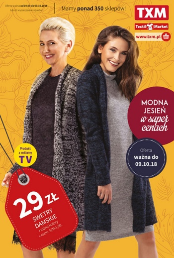 {loadposition linkTXM} 'Modna jesień w super cenach' - nowa gazetka promocyjna sieci sklepów Textil Market. Polecane promocje z gazetki Textil Market: Sweter damski - 29 zł. Bluzka damska z koronką - 29,99 zł. Torebka damska - 39,99…
