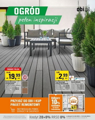 {loadposition linkObi} 'Ogród pełen inspiracji' - nowa gazetka promocyjna sieci marketów Obi. Polecane promocje z gazetki Obi: Deska tarasowa kompozytowa 200x11x2,1 cm 1 sztuka - 19,99 zł. Tuja Szmaragd wys. 25 cm - 2,99 zł. Komplet mebli Vermont -…
