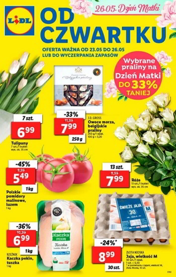 {loadposition linkLidl2} 'Od czwartku' - nowa gazetka promocyjna sieci sklepów Lidl. Polecane promocje z gazetki sklepów Lidl: Tulipany 7 sztuk - 6,99 zł. Belgijskie praliny owoce morza J.D. Gross 250 g - 7,99 zł. Kaczka pekin Rzeźnik 1…