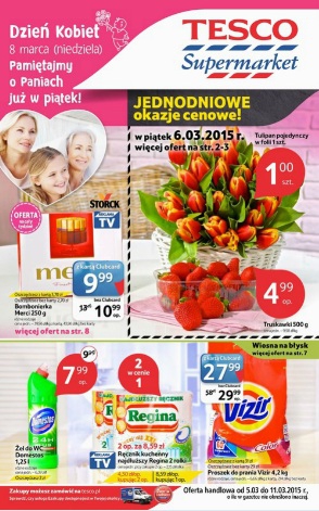 Nowa gazetka promocyjna Tesco. Polecane promocje z gazetki Tesco: Bombonierka Merci 250 g - 10,99 zł. Tulipan pojedynczy w folii - 1 zł. Truskawki 500 g - 4,99 zł. Oferta ważna od 5.03 do 11.03, o ile…