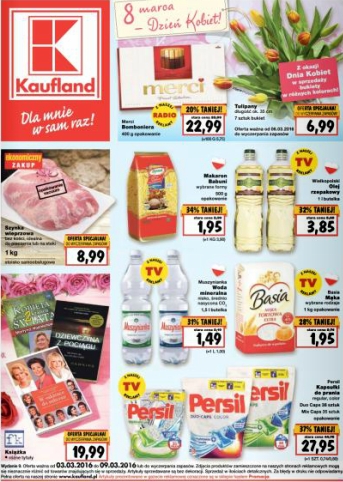 {loadposition linkKaufland} Nowa gazetka promocyjna marketu Kaufland. Polecane promocje z gazetki Kaufland: Bombonierka Merci 400 g - 22,99 zł. Tulipany 7 sztuk - 6,99 zł. Szynka wieprzowa bez kości 1 kg - 8,99 zł. Oferta ważna od 3.03…