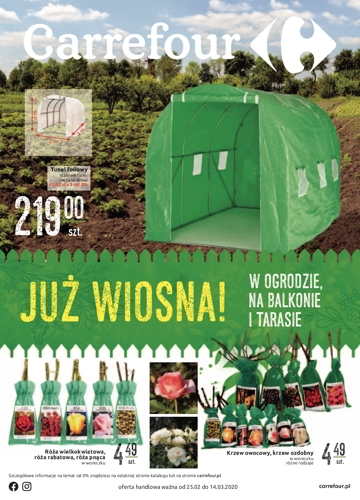 {loadposition linkCarrefour} 'W ogrodzie, na balkonie i tarasie już wiosna!' - nowa gazetka promocyjna sieci marketów Carrefour. Polecane promocje z gazetki Carrefour: Tunel foliowy - 219 zł. Róża wielokwiatowa w woreczku - 4,49 zł. Miniszklarnia - 13,99 zł.…