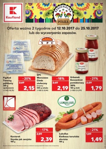 {loadposition linkKaufland} Nowa gazetka promocyjna marketu Kaufland - "Regionalna półka". Polecane promocje z gazetki Kaufland: Twaróg półtłusty FigAnd 200 g - 2,15 zł. Koncentrat pomidorowy Urbanek 180 g - 1,79 zł. Szynka jak swojska Koniarek 100 g - 2,39…