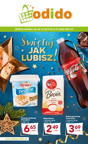 'Świętuj jak lubisz!' - nowa gazetka promocyjna sklepów Odido. Polecane promocje z gazetki Odido: Twaróg sernikowy President 1 kg - 6,65 zł. Mąka Basia 1 kg - 2,49 zł. Napój gazowany Coca-Cola 1,5 L - 3,69…