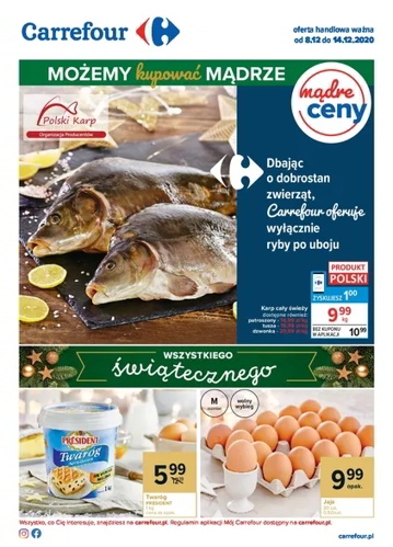 {loadposition linkCarrefour} 'Możemy kupować mądrze' - nowa gazetka promocyjna sieci marketów Carrefour. Polecane promocje z gazetki Carrefour: Karp cały świeży 1 kg - 9,99 zł*. Twaróg sernikowy President 1 kg - 5,99 zł. Jaja z wolnego wybiegu klasa M…