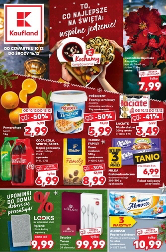 'To, co najlepsze na święta: wspólne jedzenie!' - nowa gazetka promocyjna sieci marketów Kaufland. Polecane promocje z gazetki Kaufland: Pomarańcze 1 kg - 2,99 zł. Twaróg sernikowy President 1 kg - 5,99 zł. Masło ekstra Łaciate 200 g -…