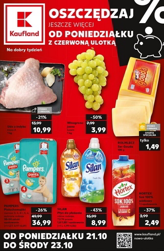 'Oszczędzaj jeszcze więcej od poniedziałku z czerwoną ulotką' - nowa gazetka promocyjna sieci marketów Kaufland. Polecane promocje z gazetki Kaufland: Udo z indyka 1 kg - 10,99 zł. Winogrono jasne 1 kg - 3,99 zł. Ser…