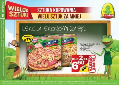 Nowa gazetka promocyjna sieci sklepów Żabka - "Wielosztuki - sztuka kupowania wielu sztuk za mniej". Polecane promocje z gazetki Żabka: Pizza Rigga 2 sztuki - 6,50 zł. Wafel Knoppers 3 sztuki - 3 zł. Kabanosy Party Mix Tarczyński…