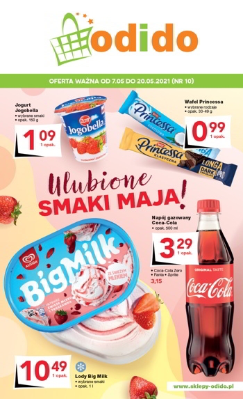 {loadposition linkOdido} 'Ulubione smaki maja!' - nowa gazetka promocyjna sklepów Odido. Polecane promocje z gazetki Odido: Jogurt Jogobella Zott 150 g - 1,09 zł. Wafel Princessa 30 g - 0,99 zł. Lody Big Milk 1 L - 10,49 zł.…