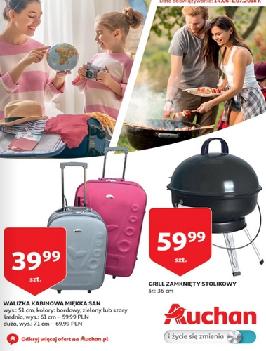 {loadposition linkAuchan} Nowa gazetka promocyjna sieci marketów Auchan. Polecane promocje z gazetki Auchan: Walizka kabinowa miękka San - 39,99 zł. Grill zamknięty stolikowy - 59,99 zł. Plecak miejski - 12,89 zł. Zakupy w Auchan przez internet!…