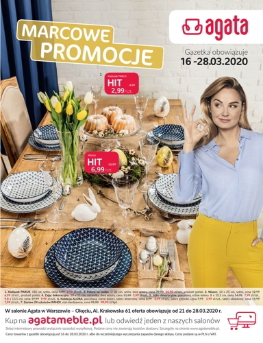 {loadposition linkAgata} 'Marcowe promocje' - nowa gazetka promocyjna sieci salonów Agata. Polecane promocje z gazetki Agata: Kieliszek Parus - 2,99 zł. Wazon - 6,99 zł. Zając dekoracyjny - 5,99 zł. Oferta ważna od poniedziałku 16.03…