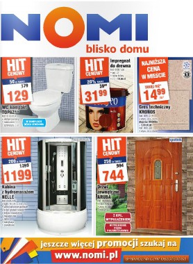 Nowa gazetka promocyjna Nomi. Polecane promocje z gazetki Nomi: WC kompakt Topaz - 129 zł. Impregnat do drewna 3 L - 31,99 zł. Kabina z hydromasażem Nelle - 1199 zł. Oferta ważna od 15.08 do 28.08 lub…