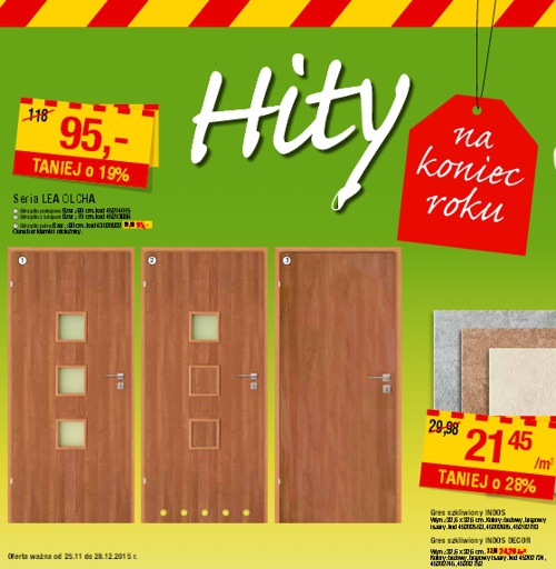 {loadposition linkLeroyMerlin} Nowa gazetka promocyjna Leroy Merlin - "Hity na koniec roku". Polecane promocje z gazetki Leroy Merlin: Skrzydło pokojowe Lea Olcha - 95 zł. WC kompakt Cersanit President - 215 zł. Kolumna natryskowa Invena Elea - 138 zł.…