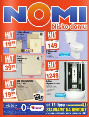 Nowa gazetka promocyjna Nomi. Polecane promocje z gazetki Nomi: Płytka ścienna Gujana m² - 16,99 zł. WC kompakt Topaz - 149 zł. Kabina z hydromasażem - 1249 zł. Oferta ważna od 18.07 do 31.07 lub do wyczerpania…