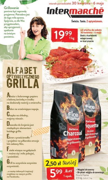 {loadposition linkIntermarche} 'Alfabet optymistycznego grilla' - nowa gazetka promocyjna sieci sklepów Intermarche Polecane promocje z gazetki Intermarche: Stek z karkówki wieprzowej w marynacie 1 kg - 19,99 zł. Węgiel drzewny lub brykiet węgla drzewnego Fire & Flame 2,5 kg…