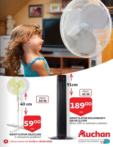 {loadposition linkAuchan} 'Wentylatory' - nowa gazetka promocyjna sieci marketów Auchan. Polecane promocje z gazetki Auchan: Wentylator Selecline 50 W - 55,99 zł. Wentylator kolumnowy Qilive Q5295 - 159 zł. Miniwentylator USB Selecline - 26,99 zł. Zakupy w Auchan…