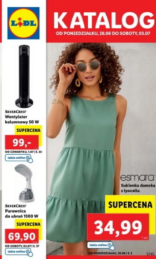 {loadposition linkLidl} Nowa gazetka promocyjna sieci sklepów Lidl. Polecane promocje z gazetki sklepów Lidl: Sukienka damska z lyocellu Esmara - 34,99 zł. Wentylator kolumnowy SilverCrest 50 W - 99 zł. Parownica do ubrań SilverCrest 1300 W - 69,90 zł.…
