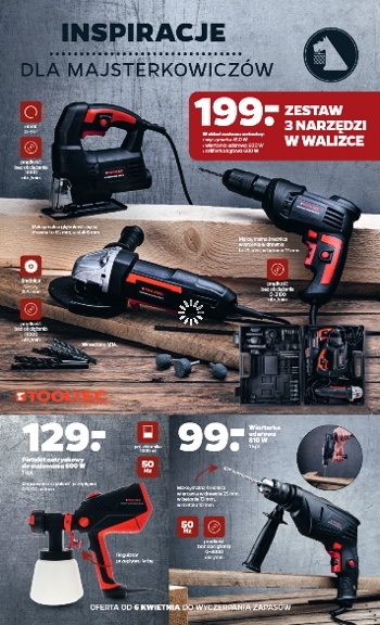 {loadposition linkNetto4} 'Niezbędnik majsterkowicza' - nowa gazetka promocyjna sieci sklepów Netto. Polecane promocje z gazetki Netto: Młotowiertarka Tooltec 1500 W - 199 zł. Wiertarka udarowa Tooltec 900 W - 99 zł. Mobilny stojak do wiertarki - 39 zł. …