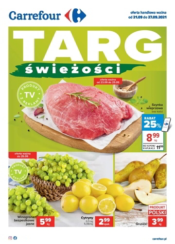 {loadposition linkCarrefour} 'Ceny niskie jak dawniej' - nowa gazetka promocyjna sieci marketów Carrefour. Polecane promocje z gazetki Carrefour: Winogrona jasne bezpestkowe 1 kg - 5,99 zł. Szynka wieprzowa bez kości 1 kg - 8,99 zł*. Imitacja kawioru z łososia…