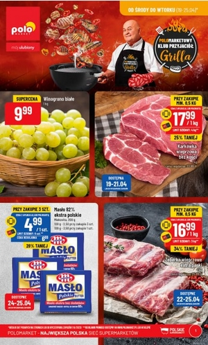 {loadposition linkPoloMarket} 'Polomarketowy Klub Przyjaciół Grilla' - nowa gazetka promocyjna sieci sklepów Polo Market. Polecane promocje z gazetki Polo Market: Karkówka wieprzowa bez kości 1 kg - 17,99 zł*. Żeberka wieprzowe extra paski 1 kg - 16,99 zł**. Winogrono…