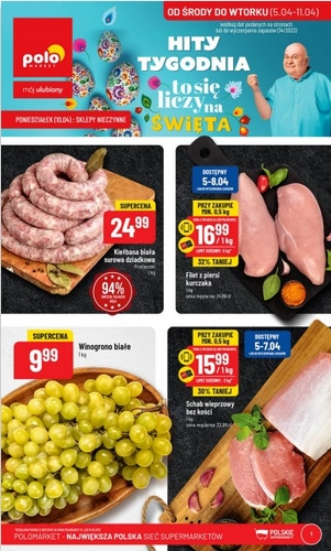 {loadposition linkPoloMarket} 'Hity tygodnia to liczy się na święta' - nowa gazetka promocyjna sieci sklepów Polo Market. Polecane promocje z gazetki Polo Market: Kiełbasa biała surowa dziadkowa Prosiaczek 1 kg - 24,99 zł. Filet z piersi kurczaka 1 kg…