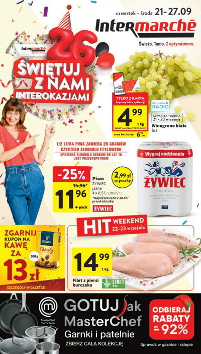 {loadposition linkIntermarche} 'Świętuj z nami Interokazjami' - nowa gazetka promocyjna sieci sklepów Intermarche Polecane promocje z gazetki Intermarche: Winogrono białe 1 kg - 4,99 zł*. Piwo Żywiec 4x500 ml - 11,96 zł. Filet z piersi kurczaka 1 kg -…