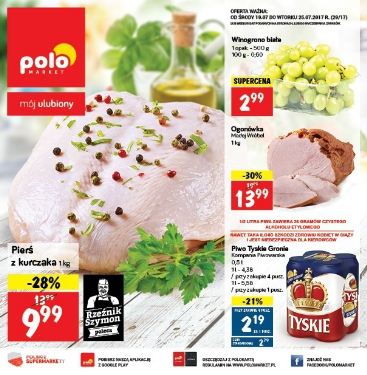 {loadposition linkPoloMarket} Nowa gazetka promocyjna Polo Market. Polecane promocje z gazetki Polo Market: Pierś z kurczaka 1 kg - 9,99 zł. Winogrono białe 500 g - 2,99 zł. Ogonówka Madej Wróbel 1 kg - 13,99 zł.…