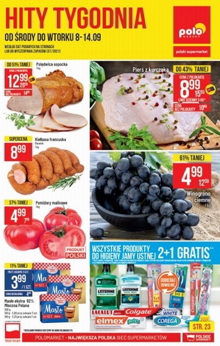 {loadposition linkPoloMarket} 'Hity tygodnia' - nowa gazetka promocyjna sieci sklepów Polo Market. Polecane promocje z gazetki Polo Market: Pierś z kurczaka 1 kg - 8,99 zł*. Winogrono ciemne 1 kg - 3,99 zł. Kiełbasa francuska Olewnik 1 kg -…