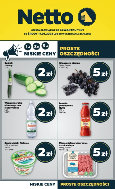 {loadposition linkNetto} 'Niskie ceny, proste oszczędności' - nowa gazetka promocyjna sieci sklepów Netto. Polecane promocje z gazetki Netto: Ogórek zielony 1 sztuka - 2 zł. Winogrono ciemne 500 g - 5 zł. Passata pomidorowa Mutti 700 ml - 5…
