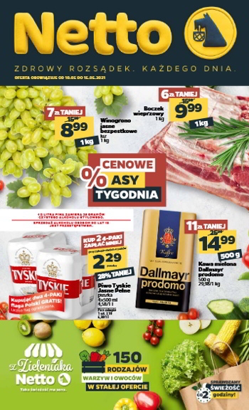 {loadposition linkNetto} Nowa gazetka promocyjna sieci sklepów Netto. Polecane promocje z gazetki Netto: Winogrono jasne bezpestkowe 1 kg - 8,99 zł. Boczek wieprzowy 1 kg - 9,99 zł. Kawa mielona Dallmayr prodomo 500 g - 14,99 zł. …