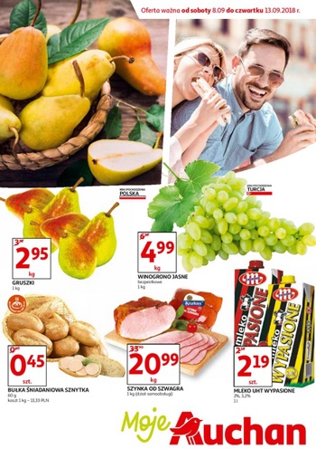 {loadposition linkAuchan} 'Moje Auchan' - nowa gazetka promocyjna sieci marketów Auchan. Polecane promocje z gazetki Auchan: Gruszki 1 kg - 2,95 zł. Winogrono jasne 1 kg - 4,99 zł. Szynka od szwagra 1 kg - 20,99…