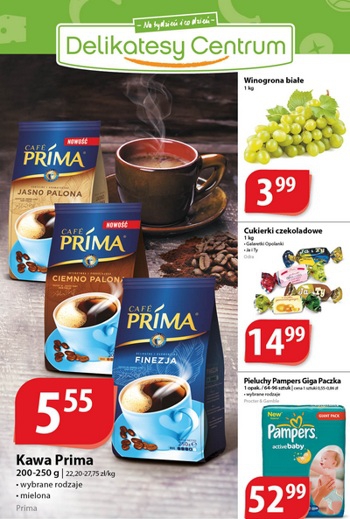 {loadposition linkDelikatesyCentrum} Nowa gazetka promocyjna Delikatesów Centrum. Polecane promocje z gazetki Delikatesów Centrum: Kawa mielona Prima 250 g - 5,55 zł. Winogrono białe 1 kg - 3,99 zł. Cukierki czekoladowe 1 kg - 14,99 zł. Oferta ważna od…