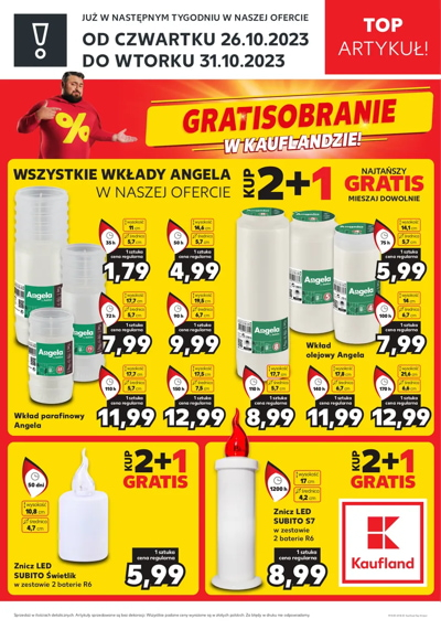 {loadposition linkKaufland7} 'Top artykuł' - nowa gazetka promocyjna sieci marketów Kaufland. Polecane promocje z gazetki Kaufland: Wkład parafinowy Angela 35 h - 1,79 zł*. Wkład olejowy Angela 75 h - 5,99 zł*. Znicz LED Subito Świetlik z 2 bateriami…