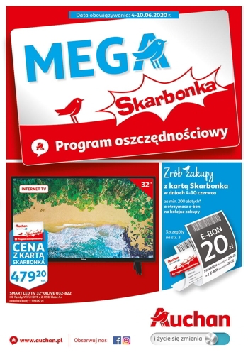 'Mega Skarbonka' - nowa gazetka promocyjna sieci marketów Auchan. Polecane promocje z gazetki Auchan: Telewizor LED 32 cale Qilive Q32-822 - 479,20 zł*. Włoszczyzna młoda 1 pęczek - 4,49 zł. Brzoskwinie Paraguayo 500 g - 5,99 zł. Zakupy…