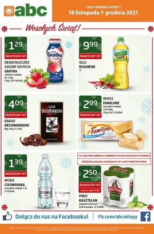 Nowa gazetka promocyjna sieci sklepów ABC. Polecane promocje z gazetki ABC: Parówki Berlinki 250 g - 4,19 zł. Woda Cisowianka 1,5 L - 1,29 zł. Piwo Żywiec 500 ml - 2,49 zł. Oferta ważna…