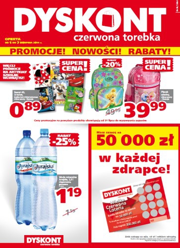Nowa gazetka promocyjna sieci handlowej Czerwona Torebka. Polecane promocje z gazetki sieci Czerwona Torebka: Zeszyt A5 16 kartek - 0,89 zł. Plecak szkolny - 39,99 zł. Woda mineralna Jurajska 1,5 L - 1,19 zł. Oferta ważna od…
