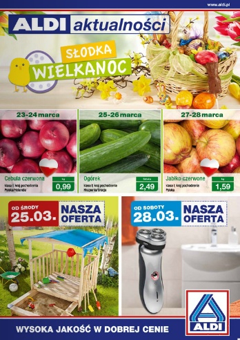 {loadposition linkAldi} Nowa gazetka promocyjna Aldi. Polecane promocje z gazetki Aldi: Wielkanocne jajo prezent 350 g - 13,99 zł. Lizaki czekoladowe zajączki 10 sztuk - 4,99 zł. Zając wielkanocny 150 g - 5,99 zł. Oferta ważna od 25.03…