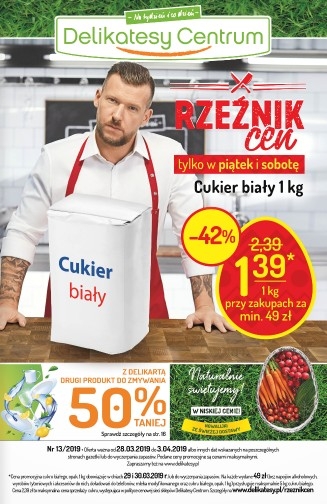 {loadposition linkDelikatesyCentrum} 'Rzeźnik cen' - nowa gazetka promocyjna Delikatesów Centrum. Polecane promocje z gazetki Delikatesów Centrum: Cukier biały - 1,39 zł*. Zając wielkanocny 60 g - 2,59 zł. Jajko Kinder Niespodzianka 20 g - 2,99 zł**. …