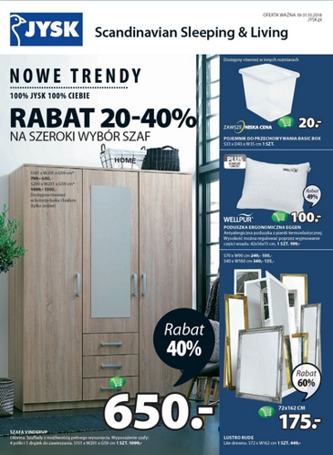 'Nowe trendy' - nowa gazetka promocyjna sieci sklepów JYSK. Polecane promocje z gazetki Jysk: Rabat 20-40% na szeroki wybór szaf. Rabat 20-40% na wszystkie łóżka kontynentalne. Rabat 30-49% na wszystkie rolety i żaluzje. Oferta…