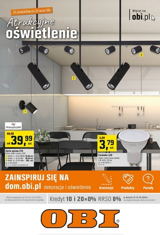 {loadposition linkObi} 'Atrakcyjne oświetlenie' - nowa gazetka promocyjna sieci marketów Obi. Polecane promocje z gazetki Obi: Seria opraw Eye Nowodvorski - od 39,99 zł. Żarówka LED - 3,79 zł. Plafon Escada - 249 zł. Oferta ważna od…