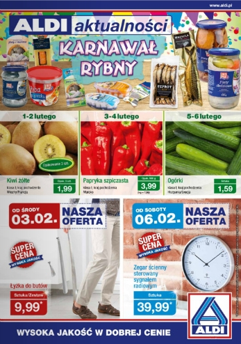 {loadposition linkAldi} Nowa gazetka promocyjna Aldi - "Karnawał rybny". Polecane promocje z gazetki Aldi: Łyżka do butów - 9,99 zł. Zegar ścienny sterowany sygnałem radiowym - 39,99 zł. Kalesony termoaktywne męskie Sprint Sport - 24,99 zł. Oferta ważna…