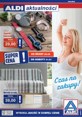 {loadposition linkAldi} Nowa gazetka promocyjna Aldi - "Czas na zakupy!". Polecane promocje z gazetki Aldi: Zegarek kwarcowy Ascot - 29 zł. Narzuta na sofę Home Creation - 39 zł. Suchy szampon do włosów 200 ml -…