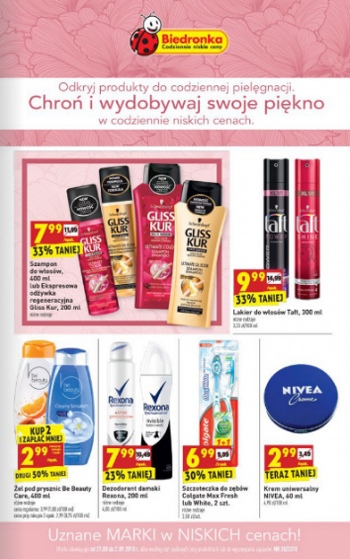 {loadposition linkBiedronka} 'Chroń i wydobywaj swoje piękno. Odkryj produkty do codziennej pielęgnacji w codziennie niskich cenach' - nowa gazetka promocyjna sieci sklepów Biedronka. Polecane promocje z gazetki sieci Biedronka: Żel pod prysznic Be Beauty Care 2x400 ml -…