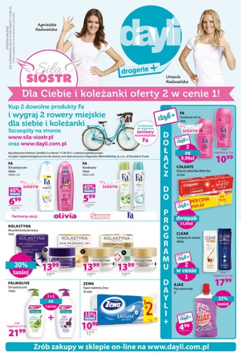 Nowa gazetka promocyjna drogerii Dayli - "Dla Ciebie i koleżanki oferty 2 w cenie 1!". Polecane promocje z magazynu Dayli: Żel pod prysznic Fa 400 ml - 6,99 zł. Dezodorant Fa 150 ml - 5,99 zł. Papier toaletowy…